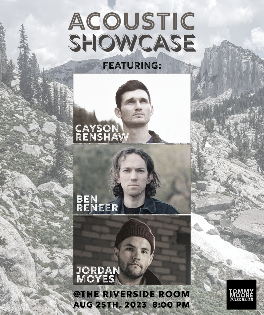 Join us for an Acoustic Showcase featuring Indie Folk Singer/Songwriters Cayson Renshaw, Ben Reneer and Jordan Moyes.